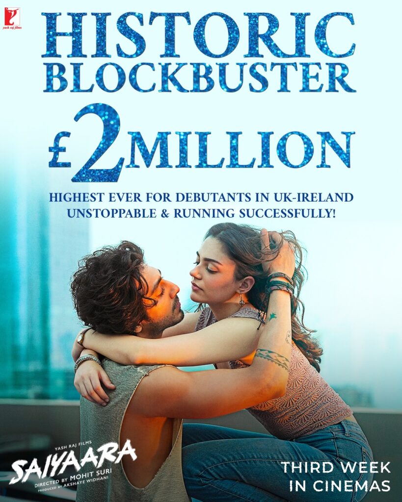 Saiyaara, the Yash Raj Films backed soulful romantic drama, has officially crossed the coveted £2 million mark in the UK-Ireland box office, becoming the highest-grossing Indian film of 2025 in the region. The picture surged past the milestone within days, adding another benchmark to the studio’s remarkable overseas run.